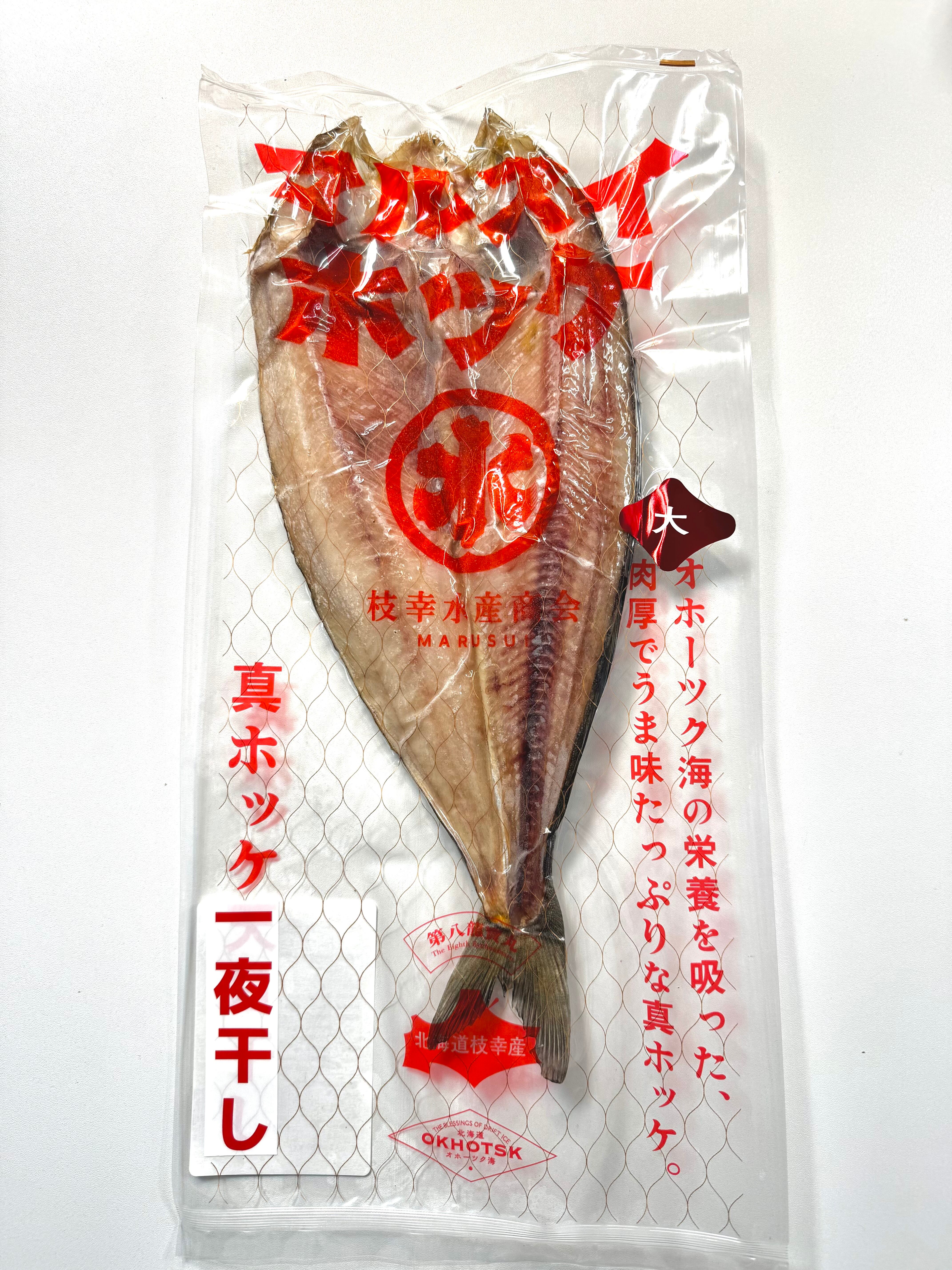 一夜干しの真ホッケは、ホッケ本来の豊かな風味と旨みを最大限に引き出しています。北オホーツク枝幸産の新鮮な真ホッケを使用しており、生臭ささはなく、魚体は肉厚で食べごたえがあります。